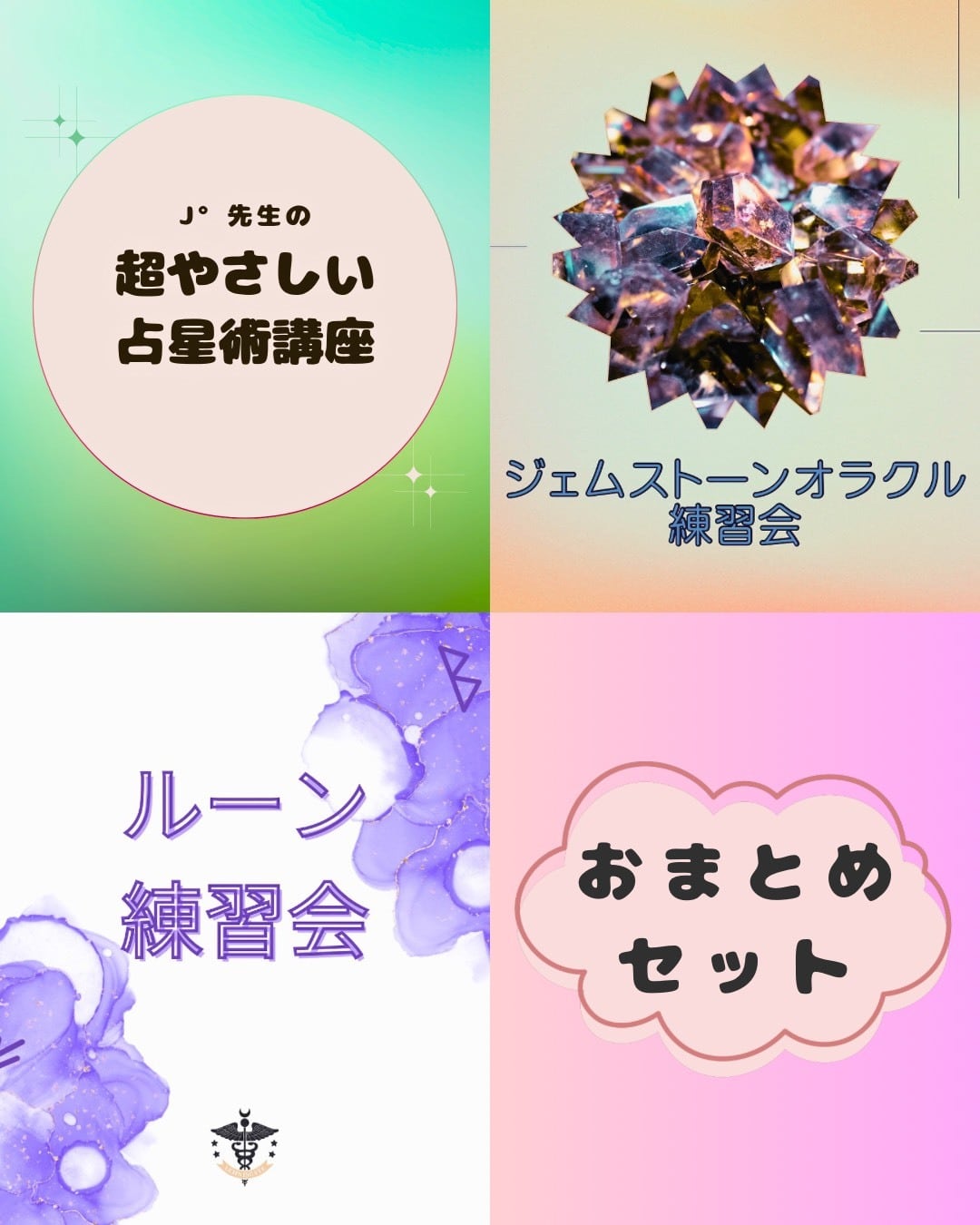 「超やさしい占星術講座」「ジェムストーンオラクル練習会」「ルーン練習会」