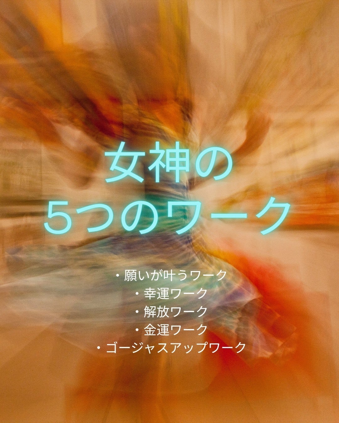 このワークをお受けになるには、事前に「女神の解放ワーク」か、「女神の金運ワーク」を1度でもお受けになっている必要があります。